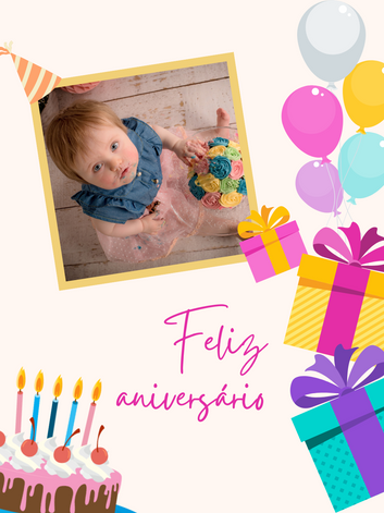 Convite virtual de aniversário tema unicórnio rosa e lilás para dispositivos móveis estudio100